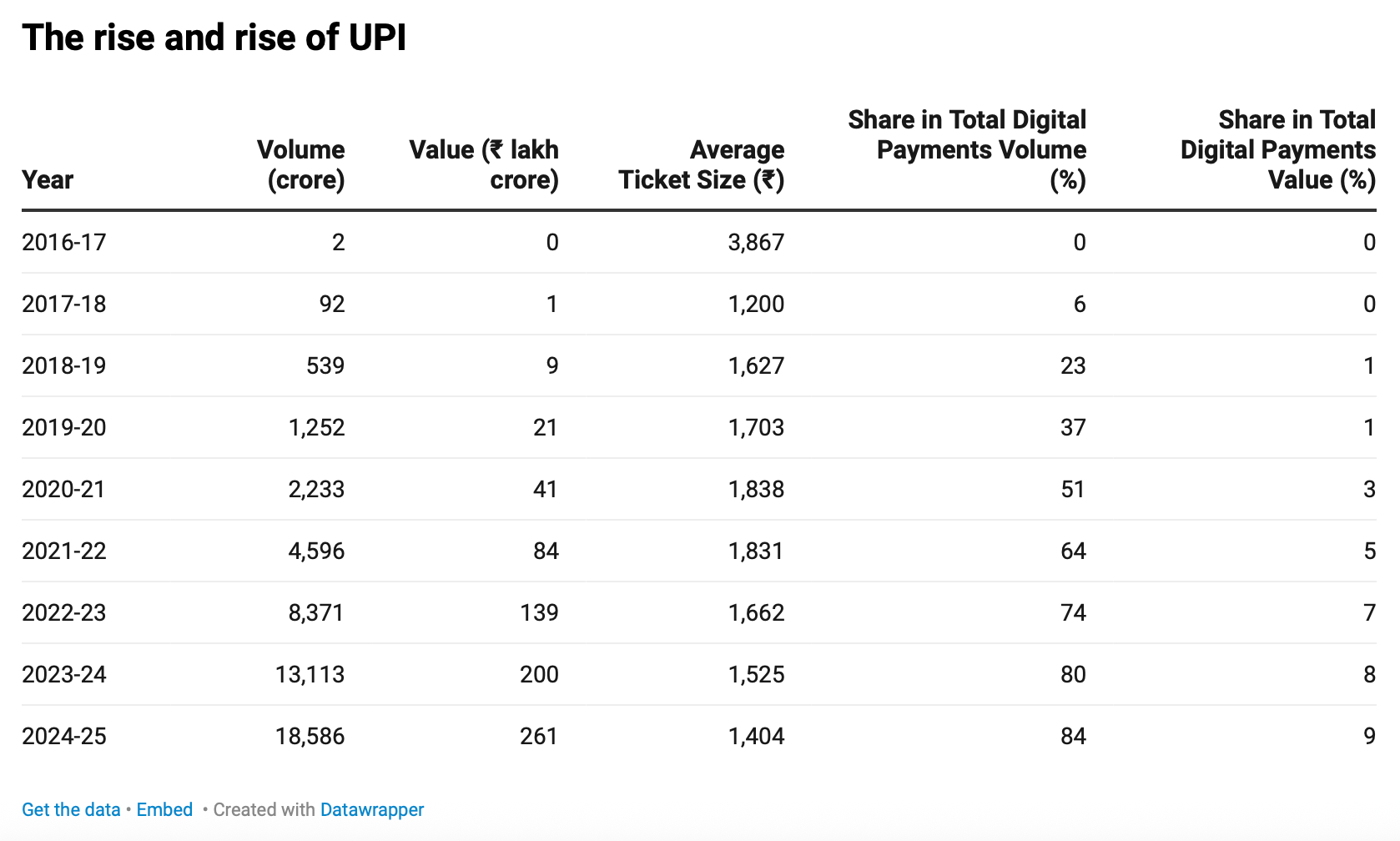 🇮🇳 UPI races ahead, accounts for 84% of total digital payments in FY25. A recent study from the Reserve Bank of India showed that higher adoption of UPI is associated with lower cash demand at both national and subnational levels. Keep reading