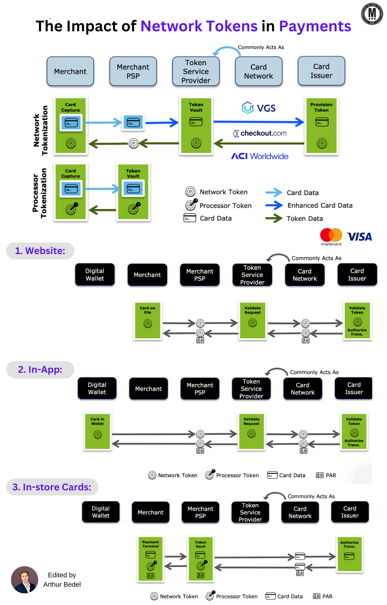 ๐ธ Network Tokenization goes further by generating tokens in cooperation with the Card Issuer and Card Network (i.e. Visa & Mastercard and others, American Express, GIE Cartes Bancaires) to offer additional benefits to the merchant and protect the PAN throughout the value chain.