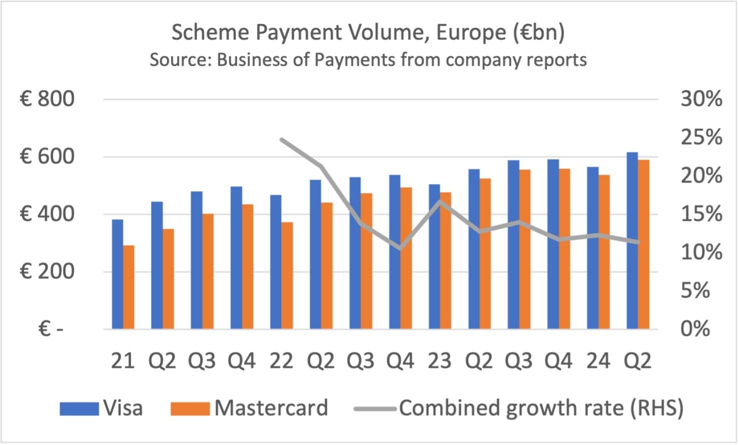 📊 Visa and Mastercard are thriving in Europe, with their total transaction volumes surging by 11% in the second quarter, reaching €1.206 trillion 🤯