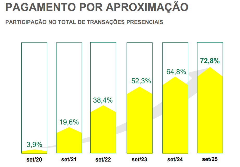 🇧🇷 Contactless payments account for 73% of card purchases in Brazil. In five years, the share of this payment method has increased from 3.9% to its current level and is expected to exceed 80% of in-person transactions by 2026 👇
