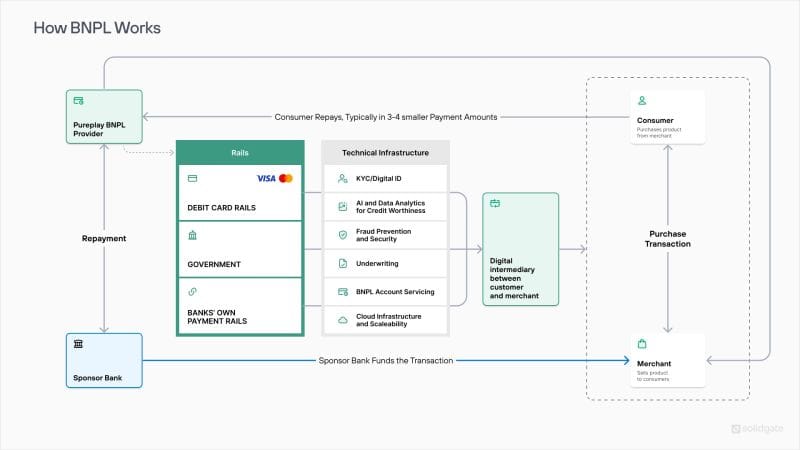 4️⃣ Sponsor banks (e.g., WebBank): Provide critical infrastructure by onboarding BNPL providers and holding deposits.