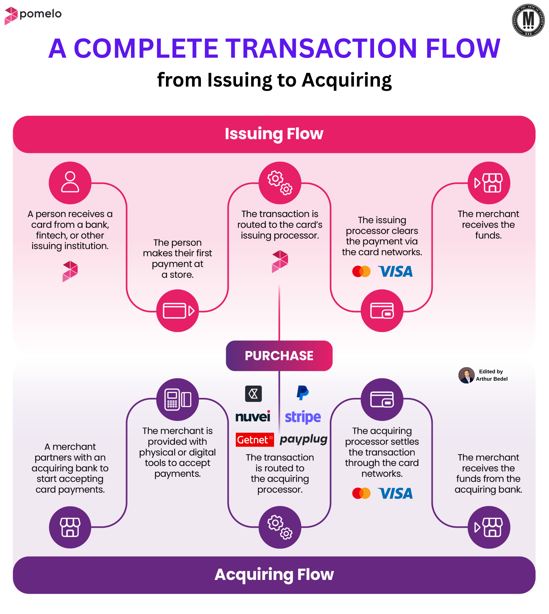 🚨 𝐀 𝐂𝐨𝐦𝐩𝐥𝐞𝐭𝐞 𝐓𝐫𝐚𝐧𝐬𝐚𝐜𝐭𝐢𝐨𝐧 𝐅𝐥𝐨𝐰 — From Issuing to Acquiring by Pomelo👇Created by Arthur Bedel 💳 ♻️