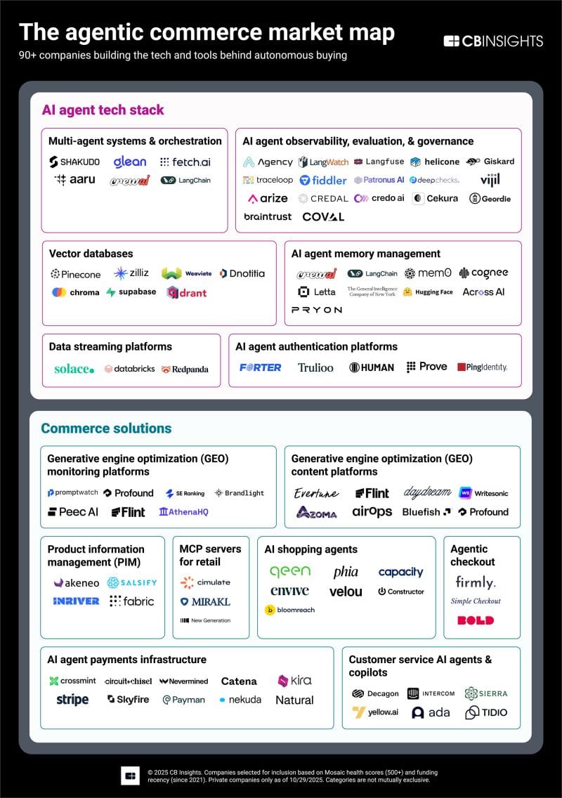 The Agentic Commerce Map by CB Insights is listing 90+ companies 👇