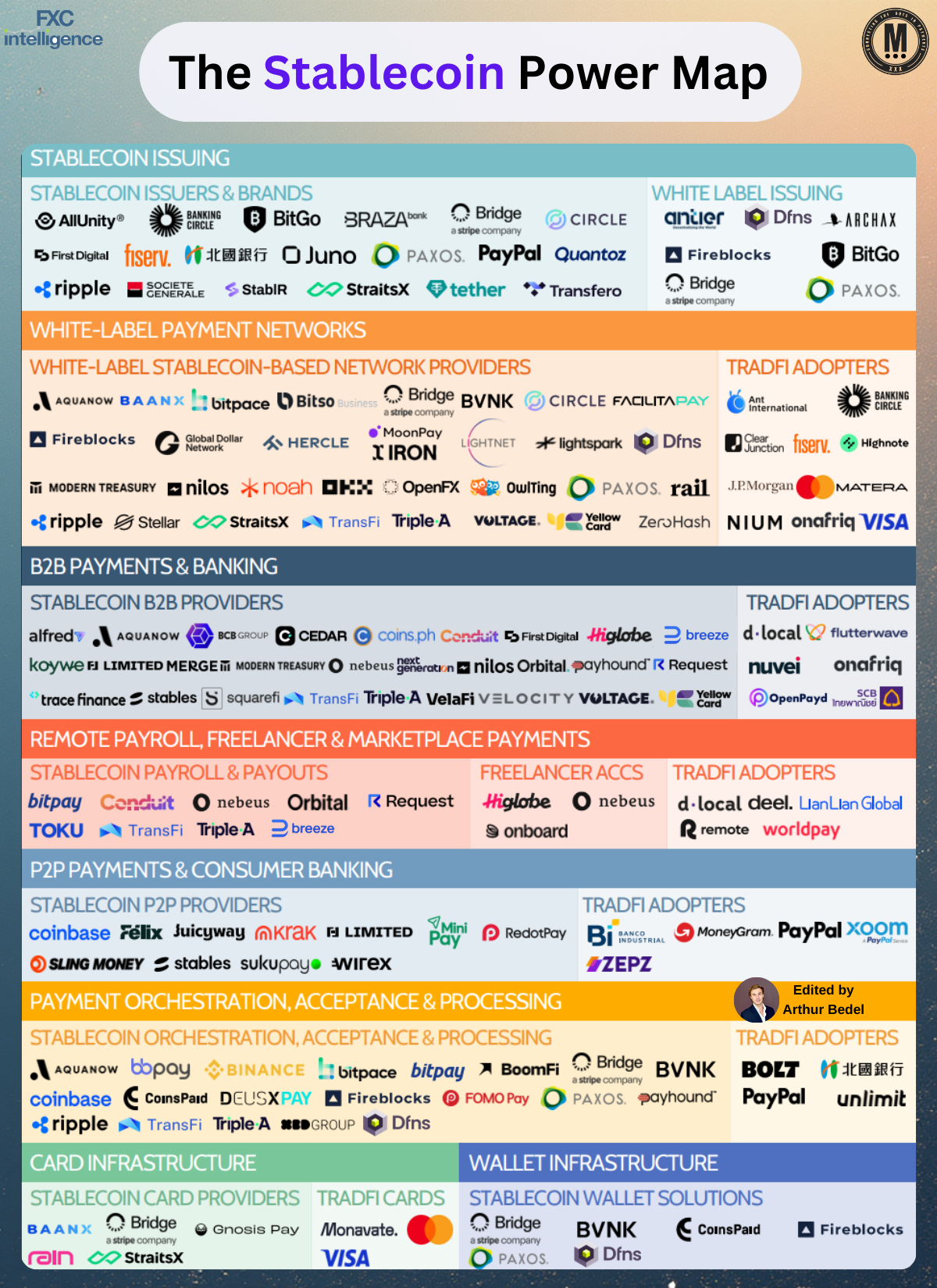 Stablecoins now move trillions annually. FXC Intelligence’s Stablecoin Power Map clarifies how value flows across issuers, liquidity networks, orchestration layers, payouts, wallets and enterprise platforms — showing how stablecoins are a programmable settlement layer in global commerce.