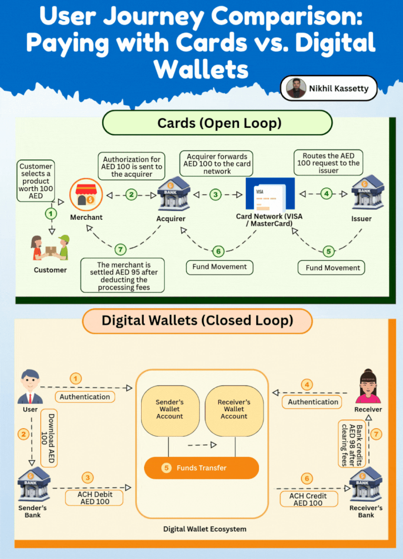 The visual above 👆 shows the difference between card payments (open loop) and digital wallets (closed loop).