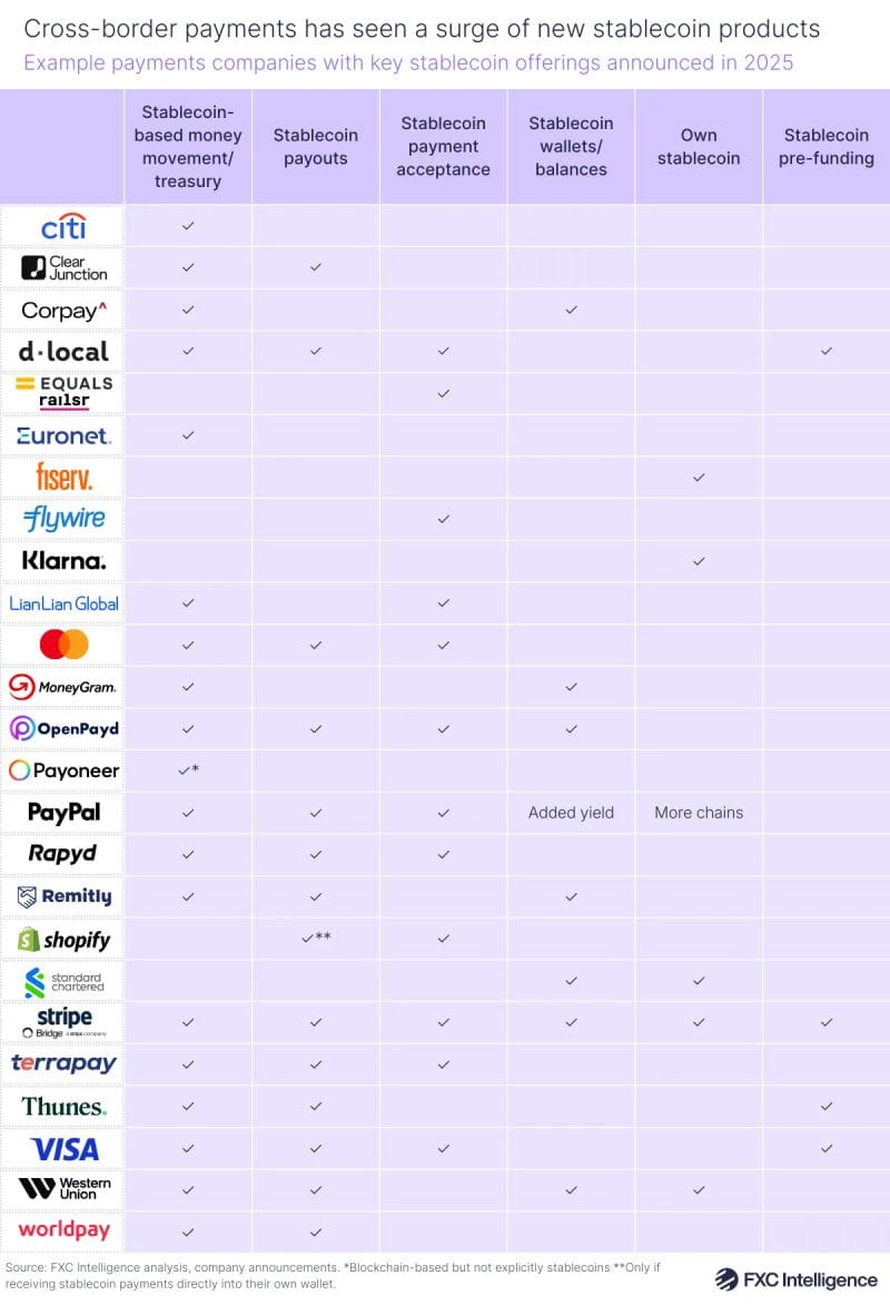 ➡️ Payments companies with key stablecoin offerings announced in 2025 👇
